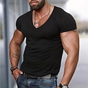 Miesten T-paita Joustinneuletoppi Lihaspaita Ribbineulos T-paita Lyhyt hiha V kaula-aukko Kesä Tavallinen Suunnittelija Perus Moderni nykyaikainen Loma Katu Bile Musta Valkoinen Harmaa Top T-paita |