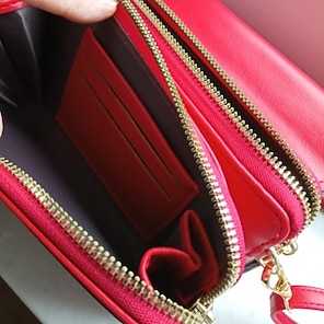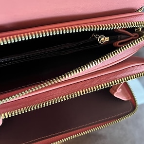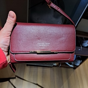 es muy práctica está bolsa cartera es amplia le cabe varias cosas aparte del dinero tarjetas el color es hermoso tal cual la imagen se ve de buena calidad ya que tiene buena apariencia