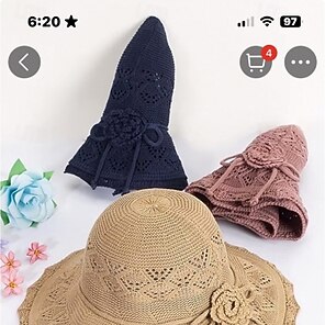 Sain tänään molemmat aurinkohatut. Rakastan Crocet-nauhaa! Ne ovat molemmat niin kauniita. Tarkistan myöhemmin, saavatko he lisää kauniissa sinisessä, sitä ei ollut varastossa, kun tilasin. Kiitos.