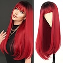 Pitkä suora peruukki otsatukalla luonnollista lämpöä kestävää kuitua synteettiset kerrokselliset peruukit naisille tytöille Halloween-cosplay-juhlaperuukit |