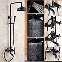 vintage-suihkuhanasetti, messinki-suihkujärjestelmä öljyhierottu pronssisade 2 kahvaa 3 reikää sadesuihkulla/suihkutanko/käsisuihku/syöttöjohdot ja kuuma/kylmä vesi |