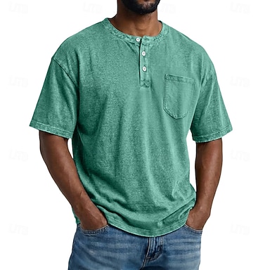 Miesten T-paidat Henley toppi Puuvillainen T-paita Pesty paita Lyhythihainen Yhtenäinen väri Tavallinen Solid Color Vintage Ahdistunut Painike ylös Haalistunut Perus Henley Kausaliteetti Päivittäin