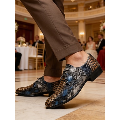 Miesten siniset käärmeennahkakuvioiset Oxford-kengät, nauhalliset ja muodikkaat juhlakengät, kiiltävät jalkineet häihin, juhliin, tanssiaisiin, muotitapahtumiin ja ylelliseen iltatyyliin