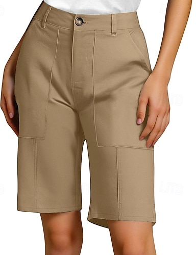 Naisten Shortsit Kesähousut Bermudan shortsit Vintage Muoti Rento arki Polven pituus Keskivyötärö Yhtenäinen väri Tavallinen Tasku Elastinen vyötärönauha Suora jalka Mukavuus Kevyt Pehmeä Joustamaton