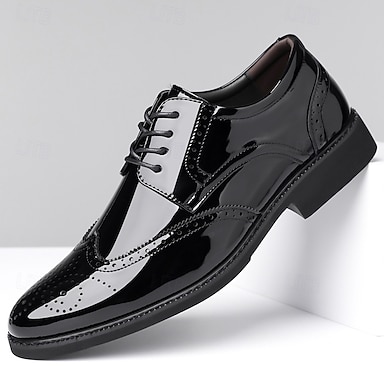 Miesten mustat lakkanahkaiset Oxford-kengät, nauhalliset muodolliset pukukengät, kiiltävät liike-elämän hääkengät sulhaselle, toimistolle, juhliin, iltatilaisuuksiin ja tyylikkääseen herrasmiehen tyyliin.