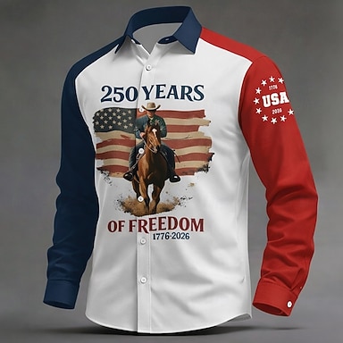 Miesten Yhdysvaltain 250-vuotisjuhla 4. heinäkuuta Yhdysvaltain lippu FREEDOM Paita Button Up paita Pitkähihainen Vintage retro Pyhäpäivä Rento / arki Kevät Syksy Sänkyjen avaus 3D-tulostus Pellava