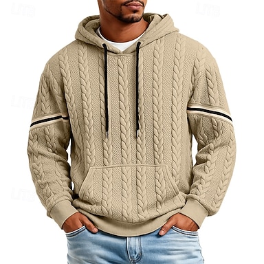 Miesten Jakardi Huppari Pullover-huppari Musta Valkoinen Laivaston sininen Khaki Harmaa Hupullinen Tavallinen Tilkkutäkki Kengurutasku Textured Kausaliteetti Päivittäin Urheilu ja ulkoilu Katutyyli