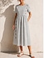 Naisten Sininen Valkoinen Kesä Kevät Midimekko Väljä mekko Midi mekko Rento mekko Loma Perus Moderni Päivittäin ulko- Työ Loose Fit Tavallinen Tiukka pyöreä kaula-aukko
