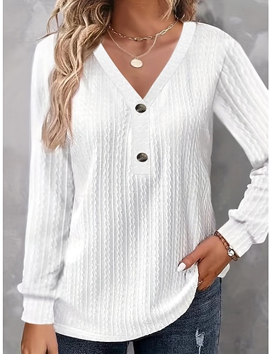 Naisten Tunika Popover paita Rento paita Pusero Napit Yhtenäinen väri Loma Vintage Tyylikäs Pitkähihainen V kaula-aukko Tavalliset topit Päivittäin ulko- Pyhäpäivä Sininen Musta Valkoinen Rubiini