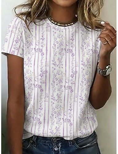 Naisten T-paita Painettu Kuvitettu Raidoitettu Tyylikäs Klassinen Vapaa-aika Lyhythihainen Tiukka pyöreä kaula-aukko Tavalliset topit Päivittäin Sininen Valkoinen / vihreä Violetti / tumma violetti