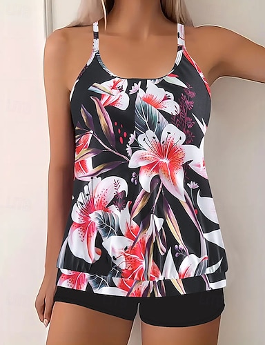 Naisten Uima-asut Tankini Uimapuku Loma Trooppinen Kukka Hihaton Uimapuvut