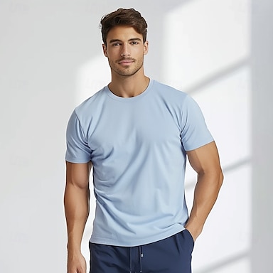 Miesten T-paita Lyhythihainen Tiukka pyöreä kaula-aukko Kesä Kevät Yhtenäinen väri Urheilu Neutraali Päivittäin Crewneck Koulu Kouluts ulko- Vaalean sininen Tumman harmaa Musta Top T-paita miehille