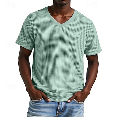 Miesten Vohveli tee T-paita T-paidat Lyhythihainen paita Lyhythihainen V kaula-aukko Kesä Tavallinen Muoti Suunnittelija Perus Jakardi Loma Katu Bile Aprikoosi Musta Purppura Top T-paita miehille