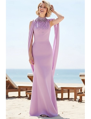 A-linja Lattiapituinen Viralliset Puvut Illanpuku Illanpuvun Tyylikäs Vintage Olkaimeton Korkea Kaula Lakkiaisillan Juhla Rhinestone Kristallikoristeilla Koristeluineen