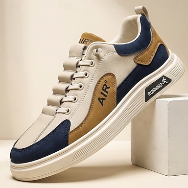 Miesten siniset ruskeat vapaa-ajan kengät, nauhalliset, kontrastipaneelilla varustetut mukavat kävelykengät, kevyet arkikengät päivittäiseen käyttöön, matkoille, autoiluun, toimistoon, viikonloppuasuihin ja tyylikkääseen arkityyliin.
