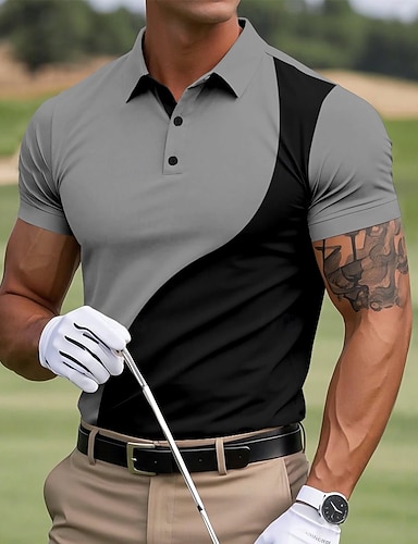 Miesten Golfpaita Golf poolopaidat Työ Kausaliteetti Kauluskäänne Lyhythihainen Perus Moderni Väripalikka Tilkkutäkki Napit Kevät kesä Normaali Tumman ruskea Musta Valkoinen Viininpunainen Laivaston
