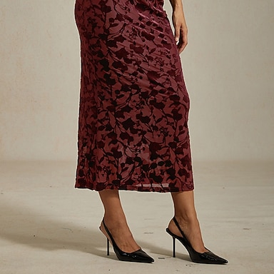Hame-sarake lattia-pituus häät vieras mekko muodolliset mekot iltapuku morsiamen äidin mekko pitkähiha korkea kaula tyylikäs vintage muodollinen kukilla