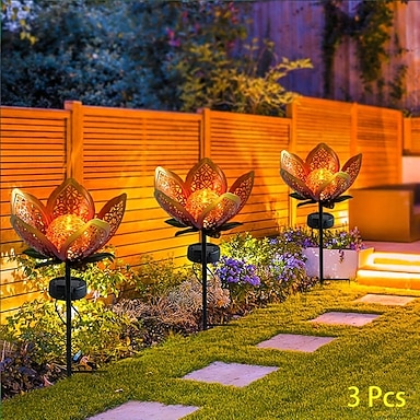 3 kpl ulkokäyttöön tarkoitettuja aurinkokennoisia vedenpitäviä onttoja rautaisia lootusvailoja projektiolla, koristeellisia LED-lamppuja puutarhaan, pihalle, nurmikolle, polulle, huvilalle, lammen