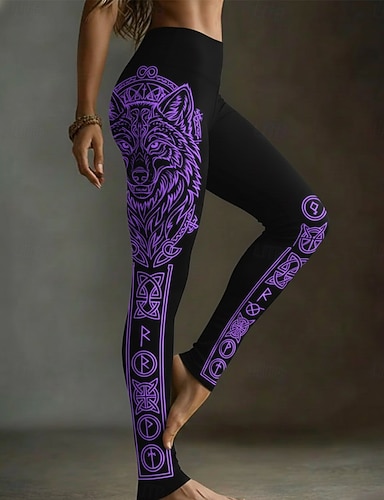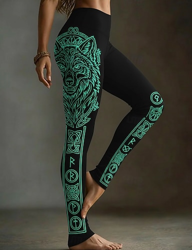 Naisten Viikinki Leggingsit Aktiivinen Loma Muoti Täyspitkä Korka vyötärö Kuvitettu Painettu Korkea leikkaus Mukavuus Ulkoilu Mukava Elastinen ulko- Festivaali Musta Kesä Kevät Talvi Hoikka