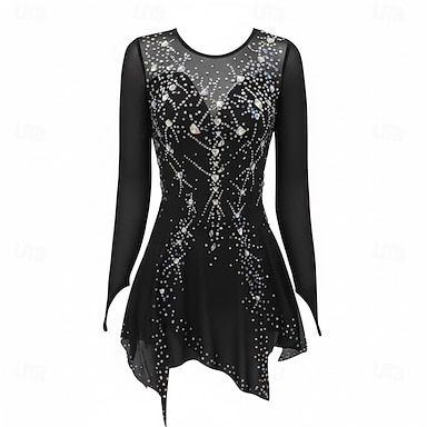 Taitoluistelupuku Naisten Luistimet Hameet Musta Tilkkutäkki Epäsymmetrinen helma Elastinen Kouluts Kilpailu Luisteluasu Klassinen Kristalli / Strassi Pitkähihainen Luistelu Taitoluistelu