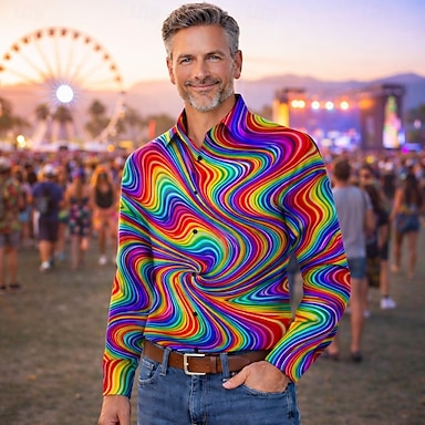 Retro / vintage 1970 luku Pusero Havaijilaispaita Pitkähihainen Hippi Geometrinen Naamiaispuku Miesten Naamiaiset musiikkifestivaali Juhla Arki-asut Aikuisten Pusero
