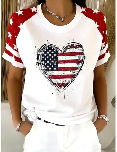 Amerikan itsenäisyyspäivä Naisten T-paita Painettu Sydän Kuvitettu Vintage Tyylikäs Klassinen Lyhythihainen Tiukka pyöreä kaula-aukko Pitkät topit Päivittäin Sininen Musta Valkoinen Rubiini Kesä Kevät