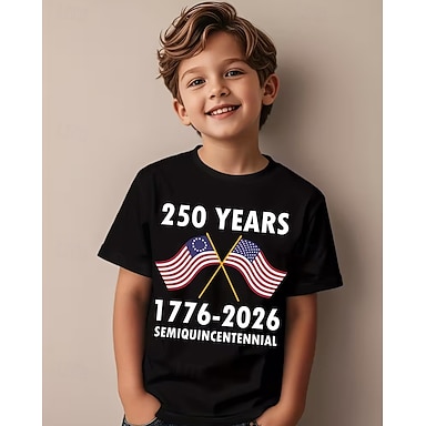 100% puuvilla Lapset Poikien Musta Valkoinen Kuvitettu Yhdysvaltojen lippu 250-vuotisjuhla T-paita Pusero Tiukka pyöreä kaula-aukko Lyhythihainen ulko- Arkikäyttö Muoti Katutyyli Suunnittelija