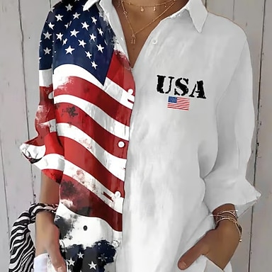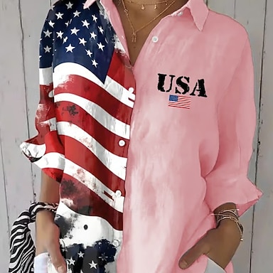 Amerikan itsenäisyyspäivä Naisten T-paita Painettu Kuvitettu Amerikan lippu Tyylikäs Klassinen Vapaa-aika Pitkähihainen V kaula-aukko Tavalliset topit Päivittäin Valkoinen Rubiini Khaki Kevät Syksy