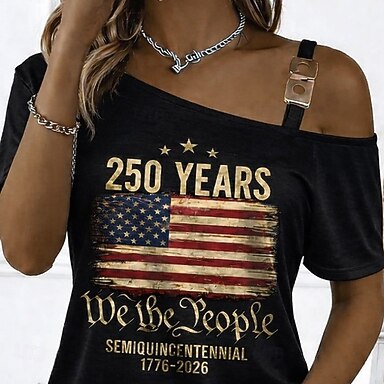 Yhdysvaltojen 250-vuotisjuhla Retro / vintage 1980 luku Lyhyt T-paita Yksiolkaiminen Lyhyet hihat Yhdysvaltojen lippu Naamiaispuku Naisten 4. heinäkuuta Itsenäisyyspäivä Aikuisten T-paita
