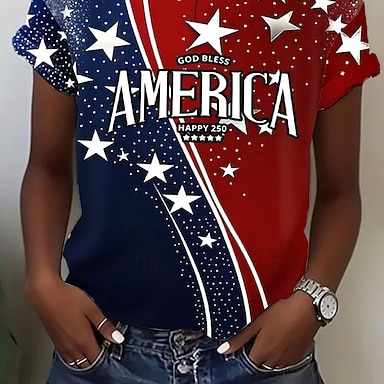 Itsenäisyyspäivä Patrianottinen Naisen T-paita Printti Graafinen Kirjain Amerikkalainen lippu Tyylikäs Klassinen Rentouttava Lyhythihainen Pyöreä kaula Normaalit Huippu Päivittäinen Sininen Musta
