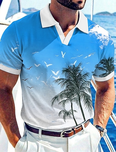 Miesten Palmu Havaijilaiset poolopaidat Lyhythihainen Poolopaidat V kaula-aukko Vapaa-aika Lomakeskus Urheilu- ja treenivaatteet Arki-asut Lomavaatteet Jäähdytys Kevät kesä Kesä Sininen Keltainen