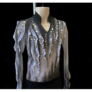 Taitoluistelutoppi Miesten Luistimet Yläosat Musta / Hopea Tilkkutäkki Epäsymmetrinen helma Elastinen Kouluts Kilpailu Luisteluasu Klassinen Kristalli / Strassi Pitkähihainen Luistelu Taitoluistelu