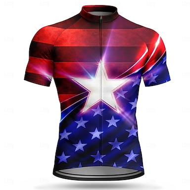 Amerikan 250-vuotisjuhla Itsenäisyyspäivä Yhdysvaltain kansallispäivä Miehet Pyöräily jersey Yhdysvaltain Yhdysvaltain lippu Tähtiä ja raitoja Lippu / kansallislippu Lyhythihainen Pyörä Villapusero
