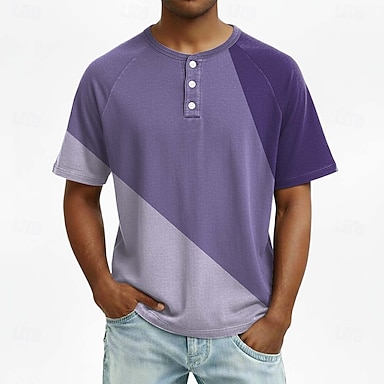Miesten Geometrinen Henley-paita T-paita Tee Lyhythihainen Muoti Suunnittelija Vapaa-aika Päivittäin ulko- Kevät kesä Kesä Kaikki vuodenajat Ruskea Tumman sininen Purppura Tumman vihreä Henley Henley