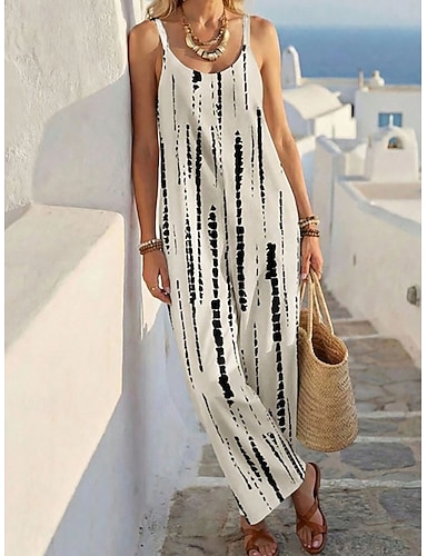 Naisten Normaali Haalarit Aktiivinen Abstrakti Hihaton Leveä reisi U kaula-aukko Painettu Avoin selkä Päivittäin Loma Normaali Musta Kesä