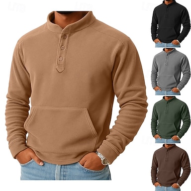 Miesten College Fleece-collegepaita Button Up -huppari Musta Tumman vihreä Khaki Kahvi Harmaa Henley Tavallinen Tilkkutäkki Kengurutasku Urheilu ja ulkoilu Kausaliteetti Päivittäin Katutyyli Tyylikäs