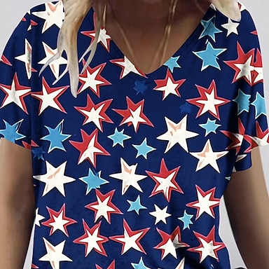 itsenäisyyspäivä amerikkalainen vuosipäivä isänmaallinen naisten t-paita printti graafinen lippu vintage tyylikäs klassinen lyhyet hihat v-pääntie tavalliset yläosat arki sininen musta valkoinen