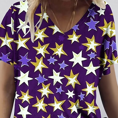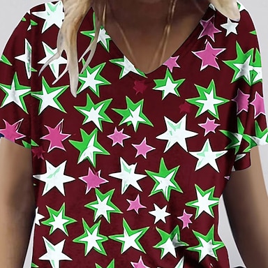 Amerikan itsenäisyyspäivä Naisten T-paita Painettu Kuvitettu Lippu Vintage Tyylikäs Klassinen Lyhythihainen V kaula-aukko Tavalliset topit Päivittäin Sininen Rubiini Apila Kesä Kevät