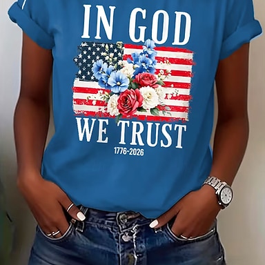Amerikan itsenäisyyspäivä Naisten T-paita Painettu Kukka Kuvitettu Lippu Tyylikäs Klassinen Vapaa-aika Lyhythihainen Tiukka pyöreä kaula-aukko Pyöreä kaula-aukko Tavalliset topit Päivittäin Sininen