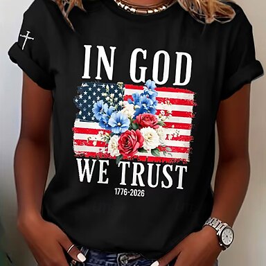 Amerikan itsenäisyyspäivä Naisten T-paita Painettu Kuvitettu Lippu Tähti Tyylikäs Klassinen Vapaa-aika Lyhythihainen Tiukka pyöreä kaula-aukko Pyöreä kaula-aukko Tavalliset topit Päivittäin Musta