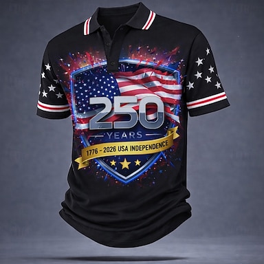 4. heinäkuuta 2026 250. Miesten Amerikan lippu veteraanit Poolopaidat Golfpaita Lyhythihainen Poolopaidat Kauluspaidat Vapaa-aika Katuvaatteet Lomavaatteet Juhla-asut 3D-tulostus Napit Sininen Apila