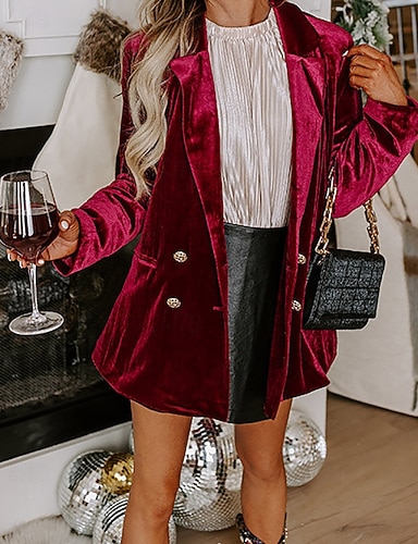 Naisten Bleiseri Velvet Blazerit Mukava Tasku Napit Muoti Tavallinen Juhla Syntymäpäivä Juhlat Normaali Sänkyjen avaus Normaali Pitkähihainen Päällysvaatteet Musta Viini Tumman vihreä Syksy Talvi