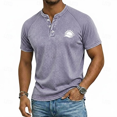Miesten Kuvitettu Vintage Pesty T-paidat Henley toppi Pesty paita Lyhythihainen Vintage Vapaa-aika Ahdistunut Kausaliteetti Päivittäin ulko- Kesä Kevät Kaikki vuodenajat Vaalean sininen Purppura