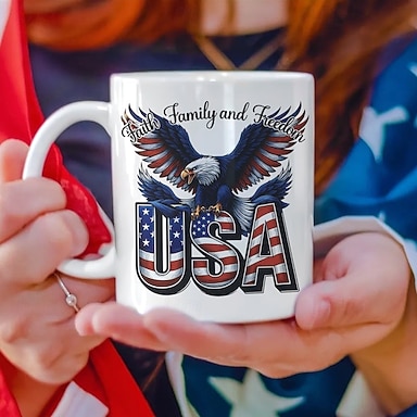 Yhdysvaltain 250-vuotisjuhlan keraaminen kahvimuki, 11,2/15,2 unssin keraaminen muki kahville, teelle, maidolle, vedelle, koristeellinen juomakuppi, ihanteellinen lahja isänmaalle