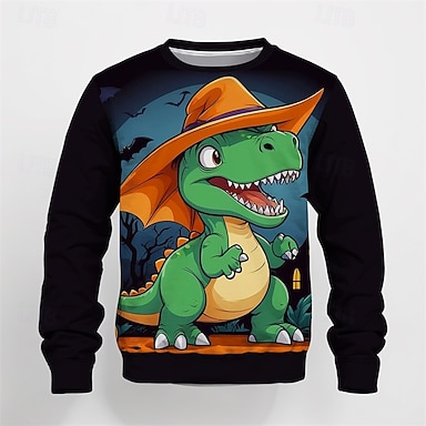 Halloween Poikien 3D Kurpitsa Dinosaurus T-paita Pitkähihainen Kevät Syksy Muoti Perus Lapset 4-12 vuotta Tiukka pyöreä kaula-aukko ulko- Kausaliteetti Päivittäin Normaali