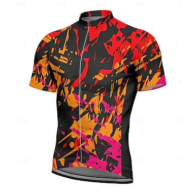 Miesten Pyöräily jersey Kuvitettu Väripalikka Kirjain ja numero Lyhythihainen Pyörä Tee paita Topit 3 takataskulla UV-vastustuskykyinen Nopea kuivuminen Etuvetoketju Heijastinraidat Urheilu Oranssi