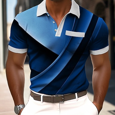 Miesten Abstrakti Geometrinen Poolopaidat Lyhythihainen Poolopaidat Kauluskäänne Business Casual ulko- Pyhäpäivä Arki-asut Tasku 3D-tulostus Kevät kesä Sininen Rubiini Purppura