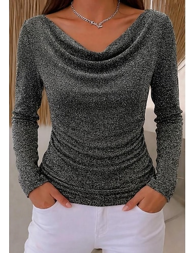 Naisten T-paita Kimaltelevat topit Tyylikäs Vapaa-aika Pitkähihainen Laskostettu kaulus Tavalliset topit Bile Juhla-asut Treffi-illan asut Hopea Musta Keltainen Rubiini Apila Kevät Syksy