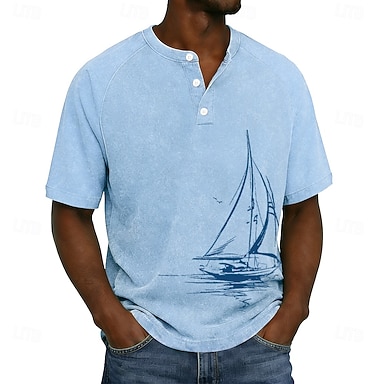 Miesten Kuvitettu Vintage Pesty Puuvillainen paita T-paidat Henley toppi Lyhythihainen Vintage Suunnittelija Vapaa-aika Kausaliteetti Päivittäin ulko- Kesä Kevät Kaikki vuodenajat Vaalean sininen