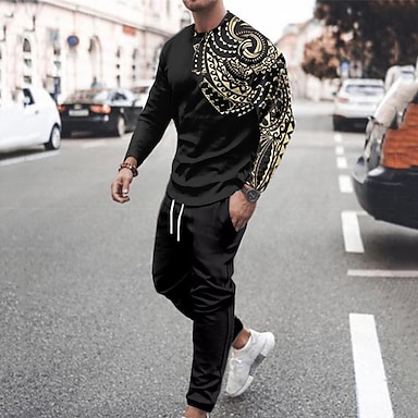 Miesten Verryttelypuku Musta Tiukka pyöreä kaula-aukko Kuvitettu Boheemityyli Urheilu ja ulkoilu Kausaliteetti Päivittäin Vapaa-aika Iso ja pitkä Urheilu 봄 & Syksy Vaatetus Hupparit paidat